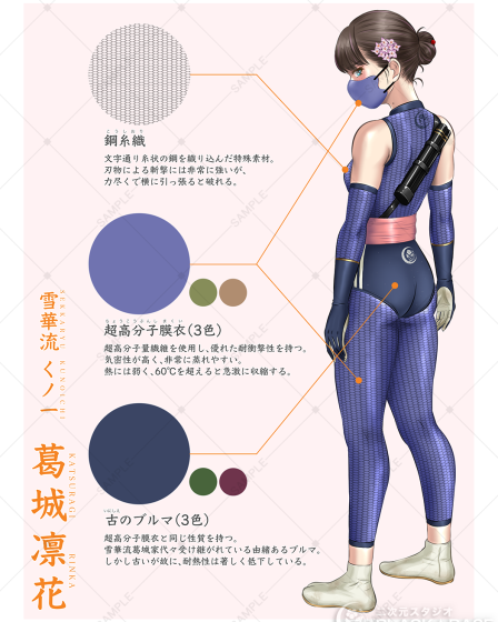 次回作【ラスト クノイチ 〜くノ一狩り〜(仮)】に向けて、新キャラを制作しました。 今回はコスチュームにも設定 …